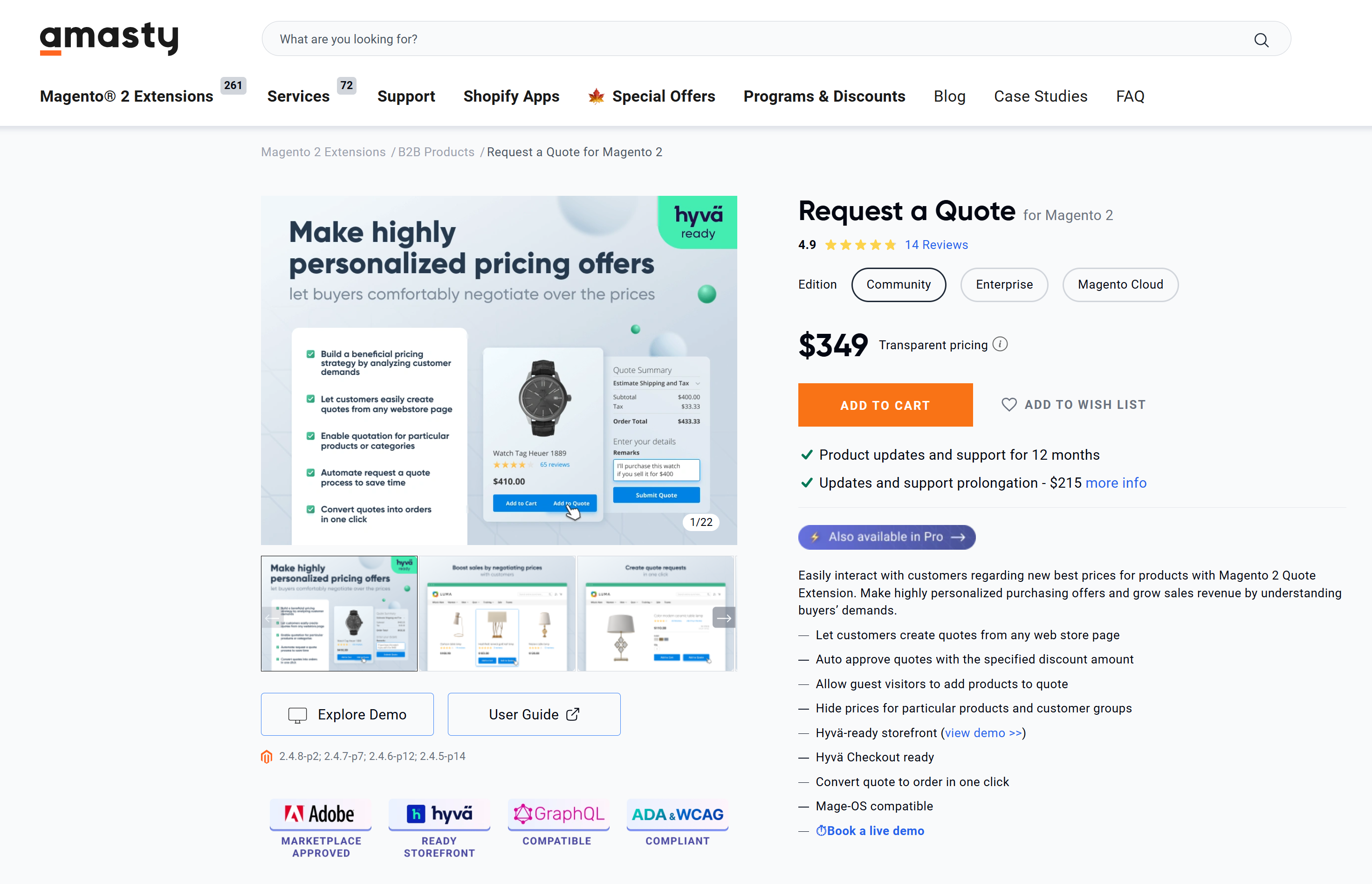 Tailored Magento B2B features